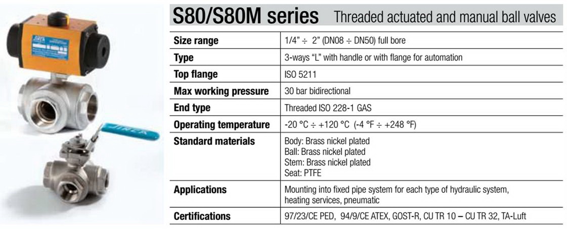 Threaded actuated and manual ball valves : S80/S80M series